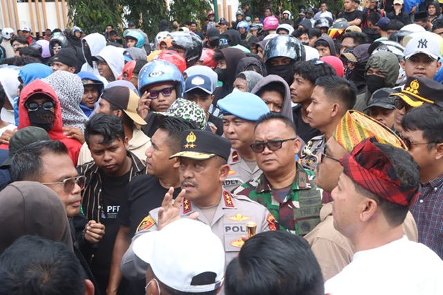 KENDARI – Diawali dengan Apel Kesiapan pengamanan unjuk rasa yang dipimpin oleh Kapolda Sultra Irjen Pol Didik Agung Widjanarko, S.I.K., M.H. Dalam arahannya agar personel memberikan pengamanan dengan sebaik-baiknya dan dilaksanakan secara humanis.