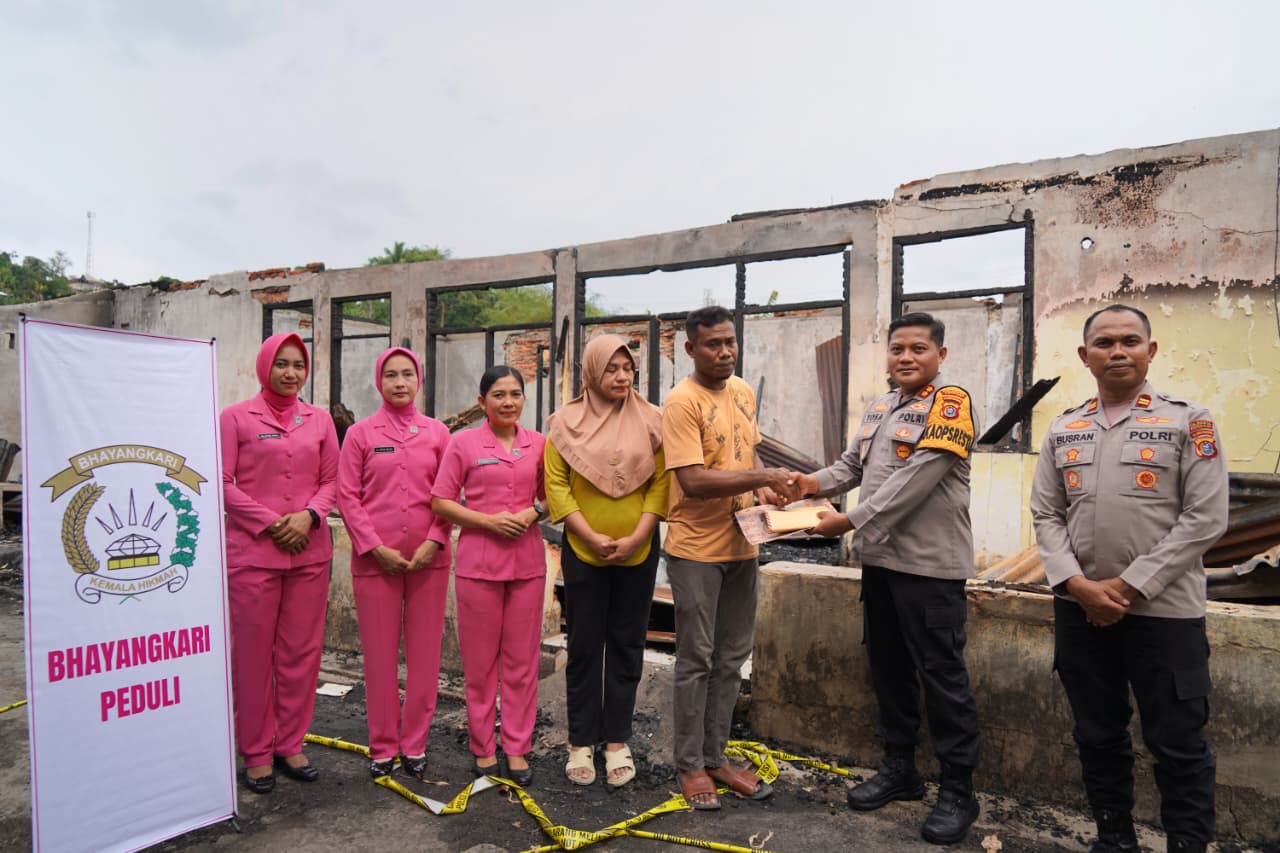 “Ini bentuk dukungan moril dan materi dari seluruh keluarga besar Polresta Kendari bersama Bhayangkari. Semoga bantuan ini bisa sedikit meringankan beban dan memberi semangat bagi rekan kita yang tertimpa musibah,” ujarnya.