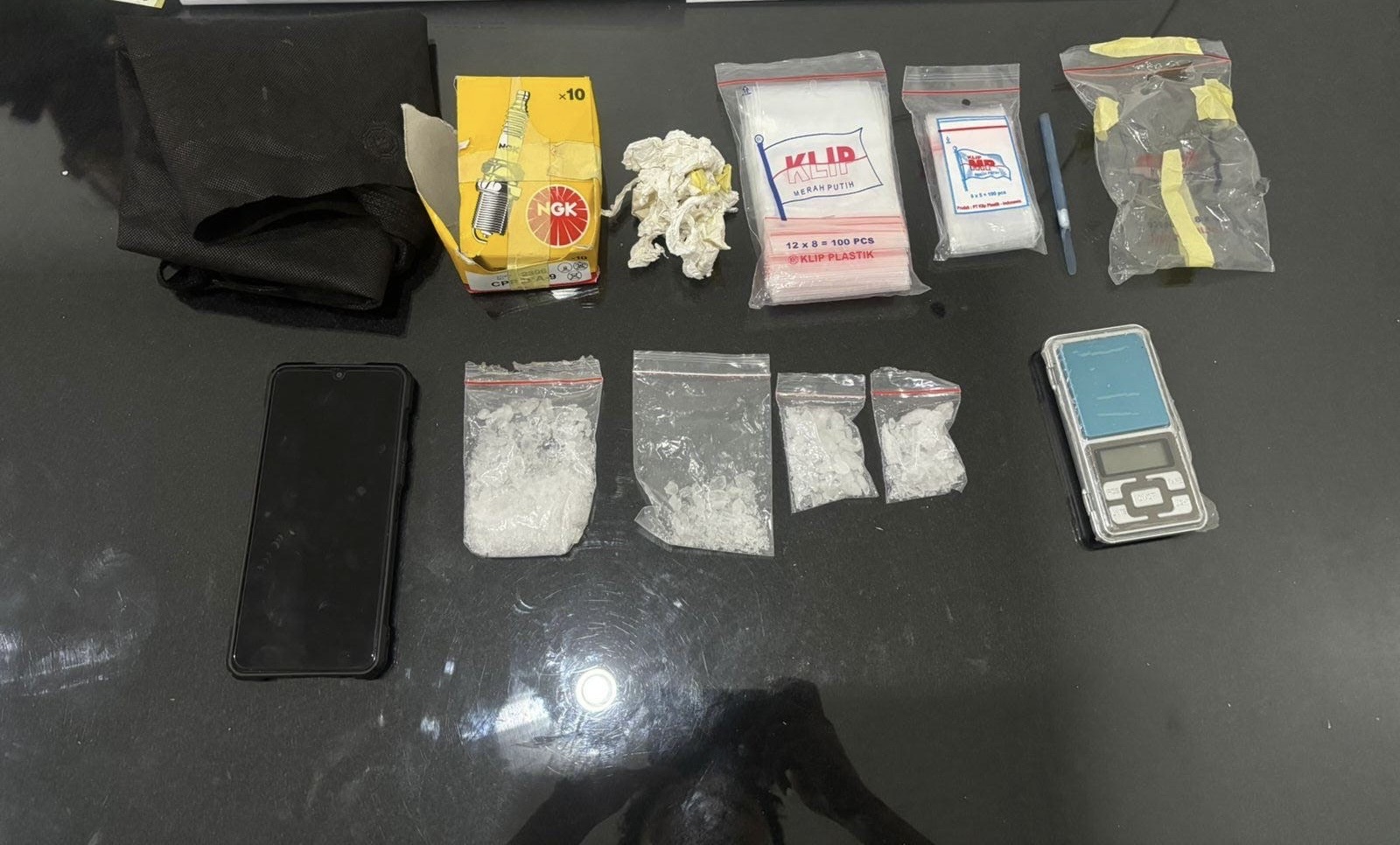 Selain narkotika, petugas turut mengamankan sejumlah barang bukti pendukung berupa satu unit telepon genggam, satu timbangan digital, puluhan saset plastik kosong berbagai ukuran, sendok sabu dari pipet, tisu, serta kotak pembungkus busi yang diduga digunakan dalam aktivitas peredaran narkotika.