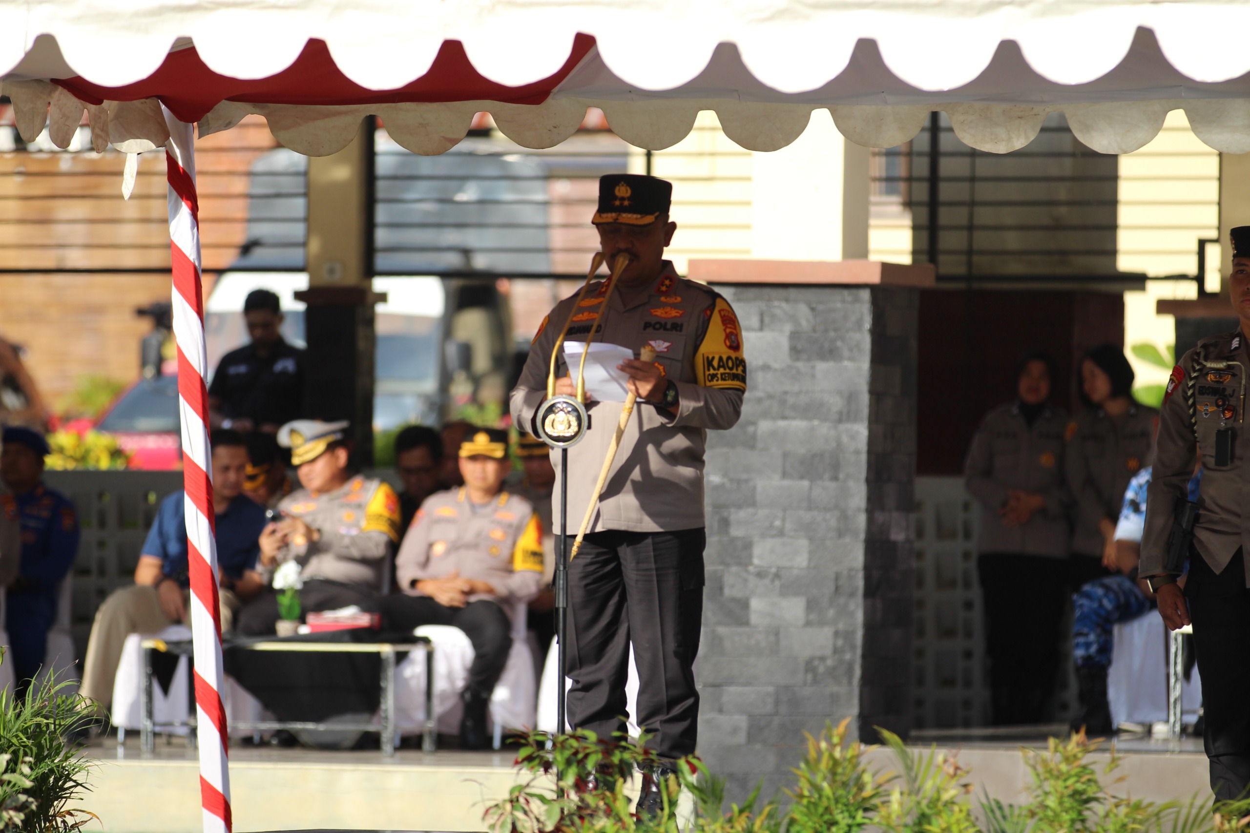 Apel dipimpin langsung oleh Kapolda Sultra Irjen Pol Didik Agung Widjanarko, serta dihadiri Wakapolda Sultra Brigjen Pol Dr. Gidion Arief Setyawan, para pejabat utama Polda Sultra, serta jajaran Forum Koordinasi Pimpinan Daerah (Forkopimda) Sulawesi Tenggara.