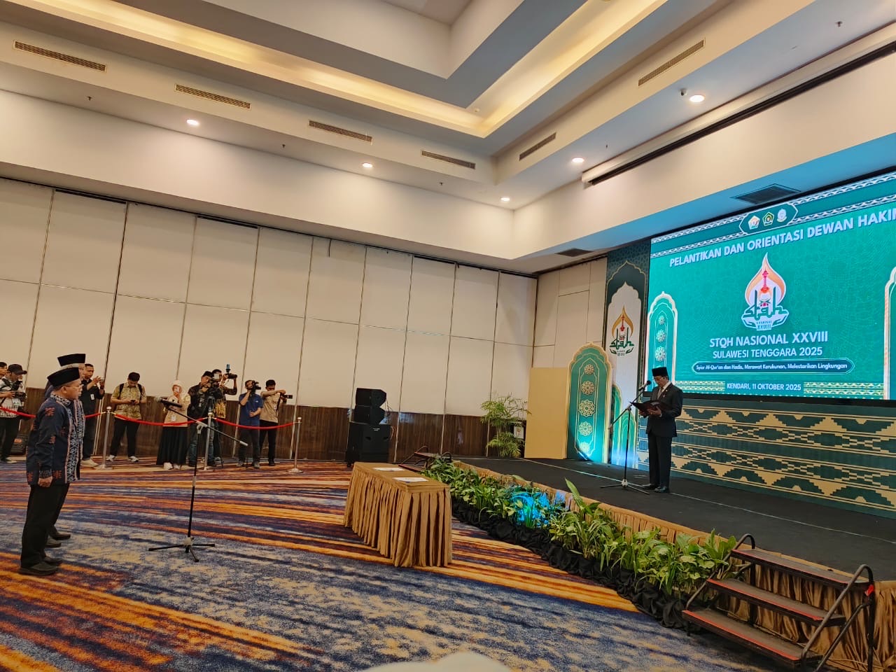 KENDARI – Menteri Agama (Menag) Republik Indonesia (RI), Nasaruddin Uma melantik Dewan Pengawas dan Dewan Hakim Seleksi Tilawatil Quran dan Hadis (STQH) Nasional XXVIII yang digelar di salah satu hotel di Kendari, Sulawesi Tenggara (Sultra), pada Sabtu (11/10/2025).