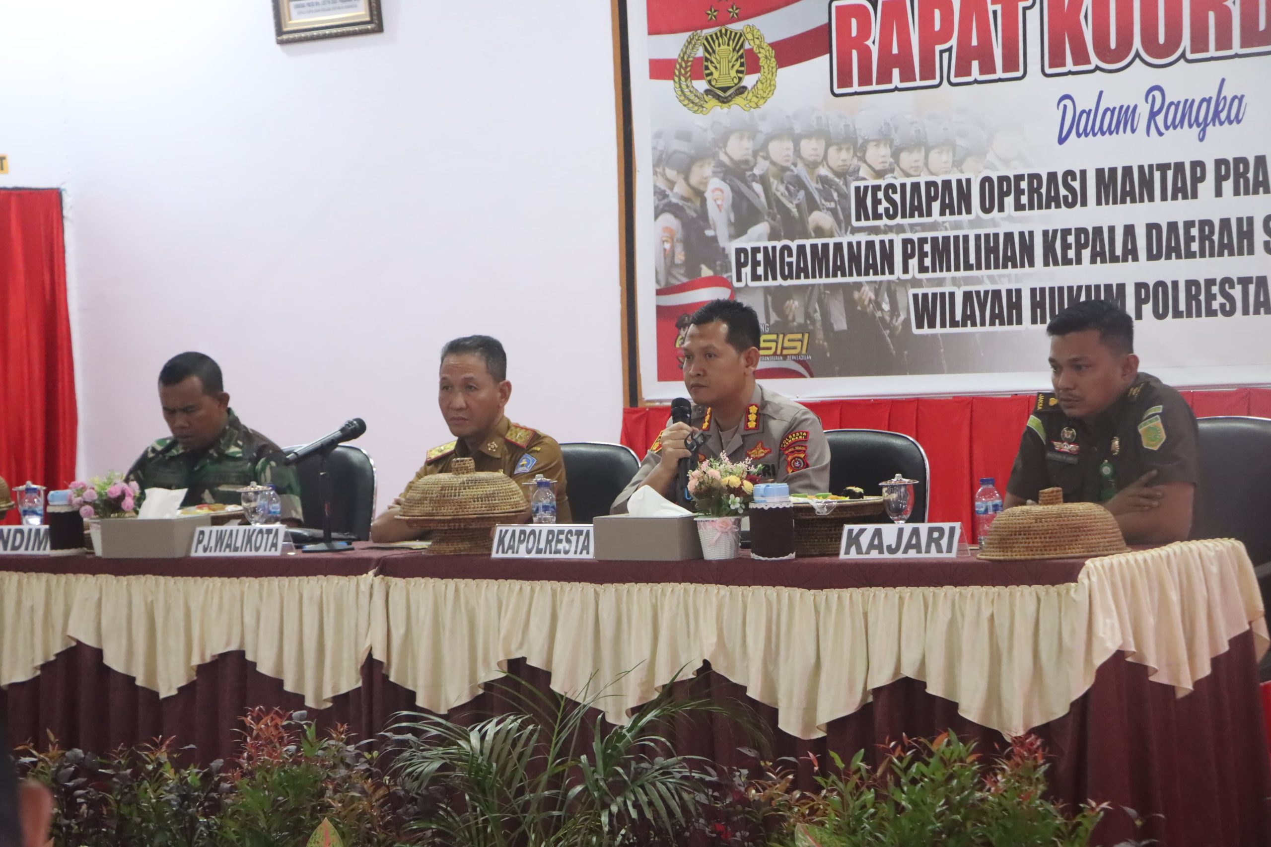 Rakor ini dipimpin langsung oleh Kapolresta Kendari Kombes Pol Aris Tri Yunarko, S.I.K., M.Si., dan dihadiri oleh berbagai pihak terkait, termasuk perwakilan dari TNI, Pemerintah Kota Kendari, Komisi Pemilihan Umum (KPU), Badan Pengawas Pemilu (Bawaslu), dan tokoh masyarakat.