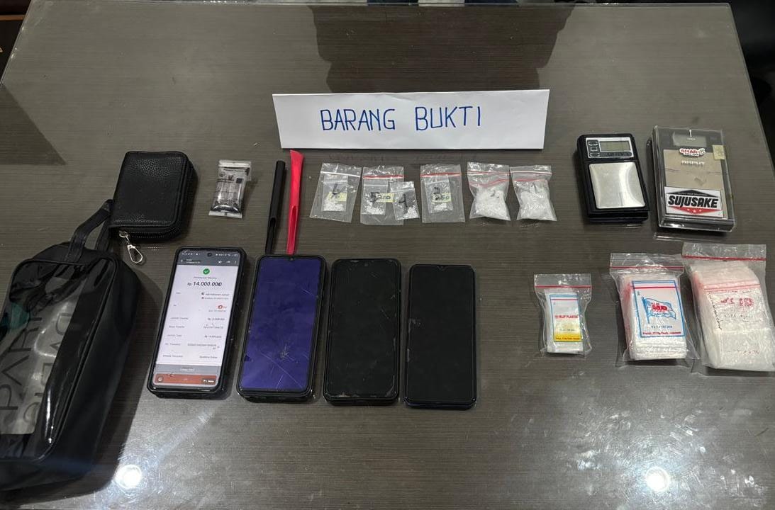 Tiga tersangka yang diamankan masing-masing berinisial AI (34), MA (36), dan RSU. Polisi menyebut dua di antaranya merupakan residivis kasus narkotika. Selain sabu dalam enam sachet, petugas juga menyita sejumlah barang bukti non-narkotika, antara lain beberapa unit telepon genggam, timbangan digital, plastik kemasan, serta alat yang digunakan untuk mengemas sabu.